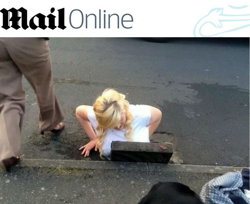 Britka sa ocitla doslova po krku v problémoch. Z ruky pustila svoj iPhone, ktorý spadol rovno do kanálu. Rýchlo si vyzula červené čižmy a mobil chcela vyloviť pomocou nôh. Asi jej nenapadlo, že v malom otvore sa môže zaseknúť.