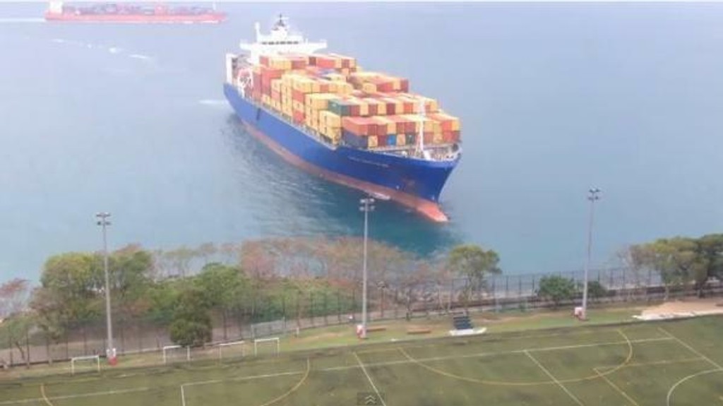 Nemecká nákladná loď Hansa Constitution sa rútila priamo na breh v Hongkongu. Zastavila sa tesne pred plotom futbalového ihriska na pobreží.