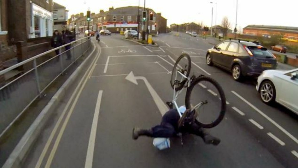 Britovi sa podarilo zachytiť cyklistov, ktorí telefonovali, prechádzali na červenú, jazdili po chodníkoch alebo si krátili cestu rovno cez križovatku. Najšokujúcejší je záber na muža, ktorý sa počas jazdy zbavil bundy. Jeho vyzliekanie malo nepríjemný koniec - brutálny pád.
