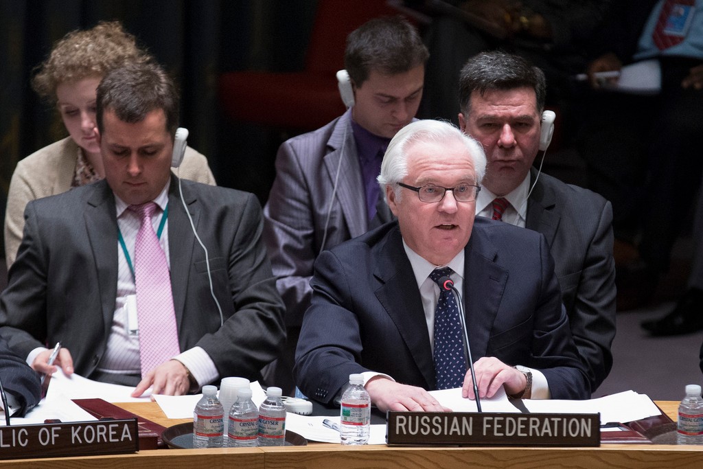 "Je to Západ, ktorý rozhodne o príležitosti zabrániť občianskej vojne na Ukrajine," vyhlásil Čurkin. "Niektorí ľudia, aj v tejto sále, nechcú vidieť skutočné dôvody toho, čo sa deje na Ukrajine, a neustále v tom vidia ruku Moskvy. Stačilo. Už stačilo," dodal s tvrdením, že naopak Ukrajina využíva radikálne neonacistické skupiny na narúšanie stability.