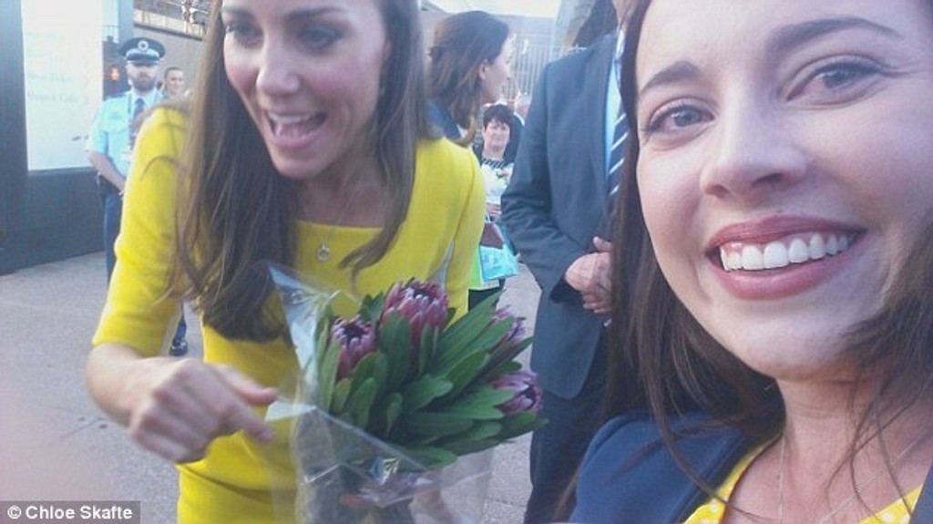 Študentka Chloe Skafteová si urobila selfie s vojvodkyňou Kate, keď jej podávala kyticu kvetov. Aj ona ju zverejnila na internete.