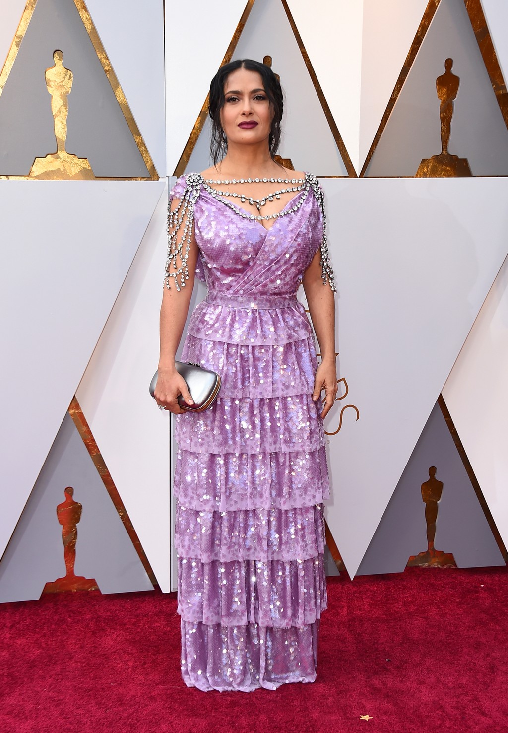 00:40 - Na červený koberec dorazila herečka Salma Hayek, ktorá už stihla aj rozhovor s Michaelom Strahanom.