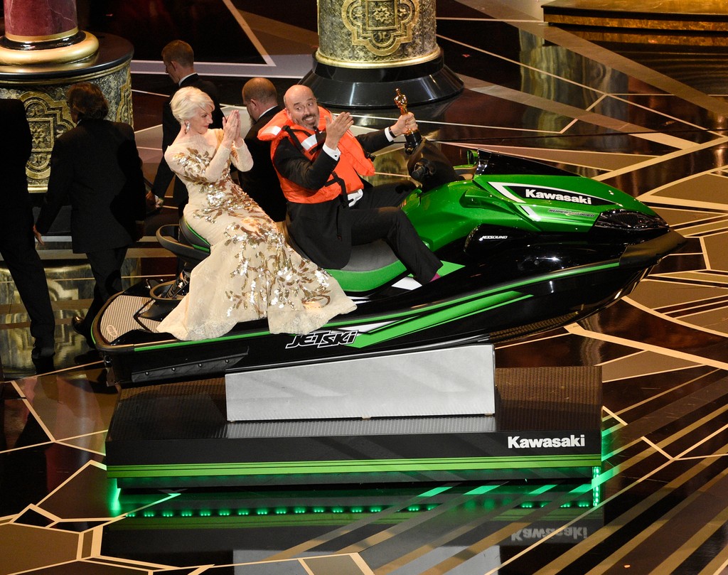 02:18 - Zlatú sošku za Najlepší mužský herecký výkon vo vedľajšej úlohe získal herec Sam Rockwell za drámu Tri billboardy kúsok za Ebbingom. "Budem rýchly, spusť tie stopky, chcem získať ten skúter!" povedal na začiatku ďakovnej reči Jimmymu Kimmelovi. Jeho prejav trval jednu minútu a 29 sekúnd. "Musíte sa viac snažiť," povedal Jimmy.
