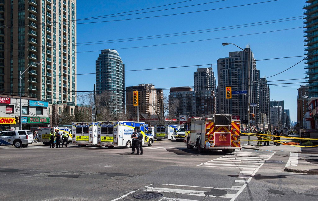 Očitý svedok incidentu, ktorý sa odohral na rušnej križovatke ulíc Yongeova a Finchova, uviedol, že dodávka vyšla na chodník a rýchlosťou približne 80-100 kilometrov za hodinu zrážala chodcov.