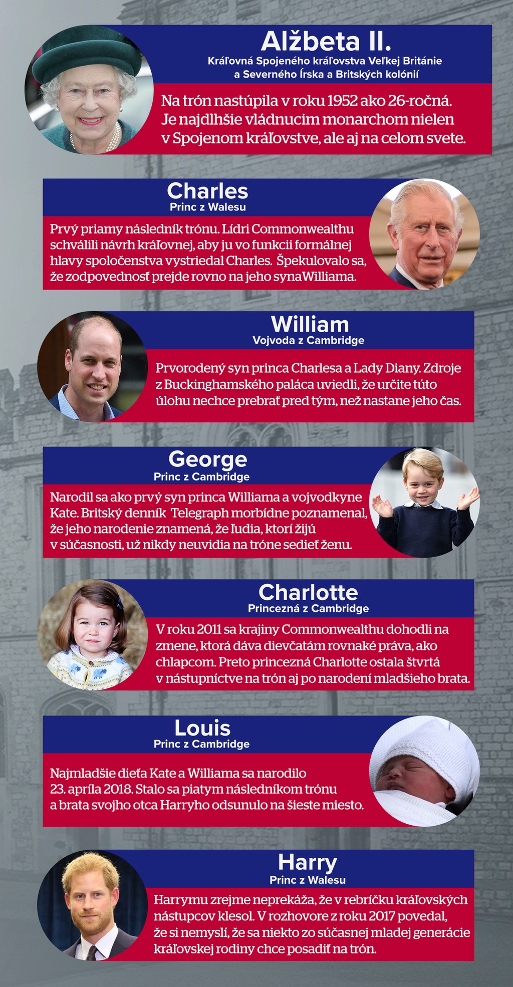 Pozrite si grafické znázornenie nástupníckej línie britskej kráľovskej rodiny.