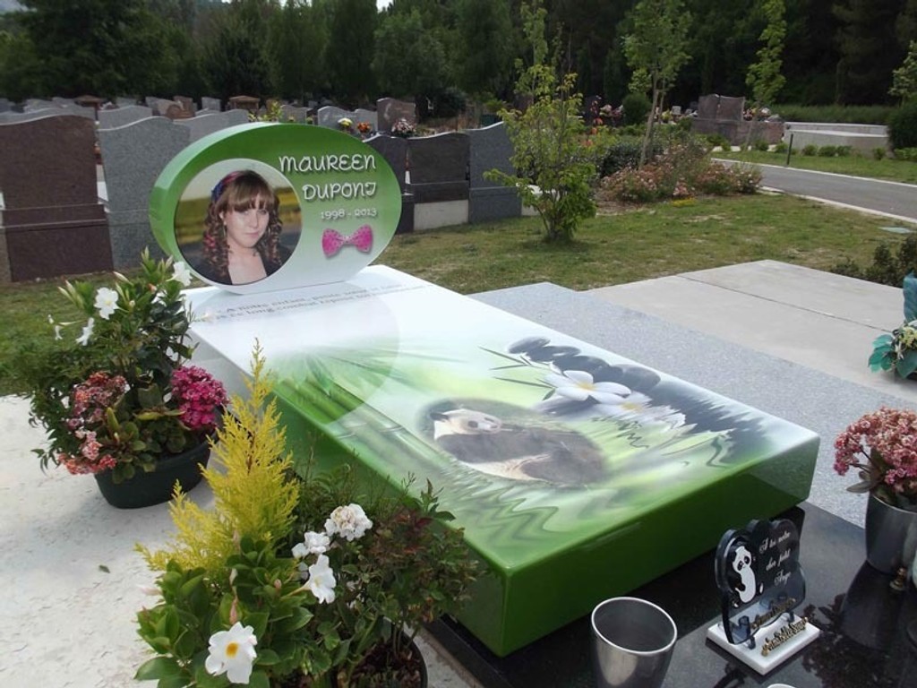 Zdá sa, že tmavým a šedivým náhrobným kameňom pomaly odzvonilo. Istá francúzska kamenárska spoločnosť vyrába už od roku 2012 špecifické náhrobné kamene, ktoré prispôsobia vašemu prianiu či prianiu nebožtíka.