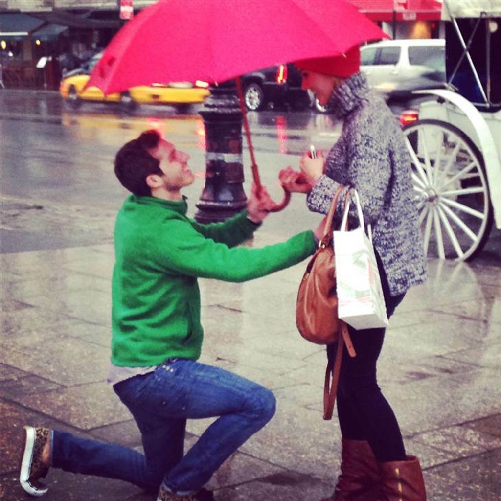 Zásnuby najprv plánoval na vyhliadke na Rockefellerovom centre. Pre dážď však musel vymyslieť inú alternatívu. Počasie bolo naozaj škaredé, preto sa nekonala ani jazda kočom po Central parku. Elan preto vytiahol prsteň uprostred ulice.
