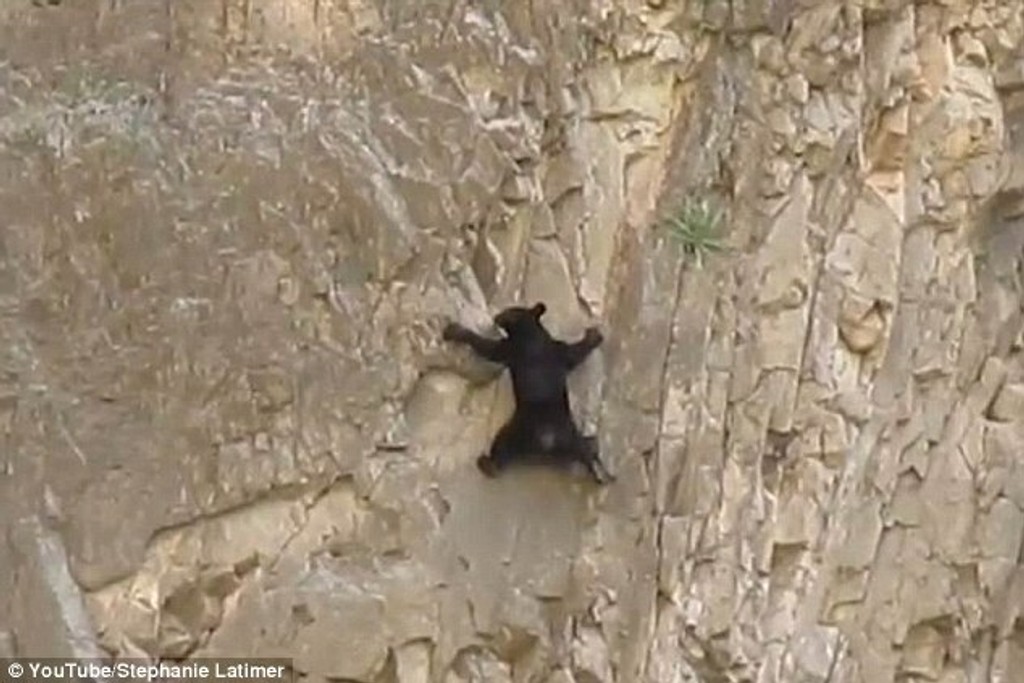 Medvede liezli asi 60 metrov nad riekou. Stephanie mala až strach, aby sa im nič nestalo. Bála sa najmä o mláďa, ktorému držala celý čas palce. Ako sa ich výstup skončil si pozrite vo videu.