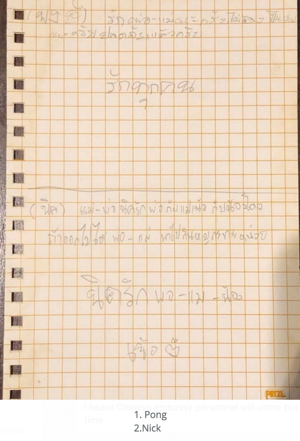 Napríklad chlapec menom Tun napísal: "Mami, tati, nebojte sa o mňa, som v poriadku. Veľmi vás prosím, keď sa odtiaľto dostanem von, pripravte mi vysmážané kura."