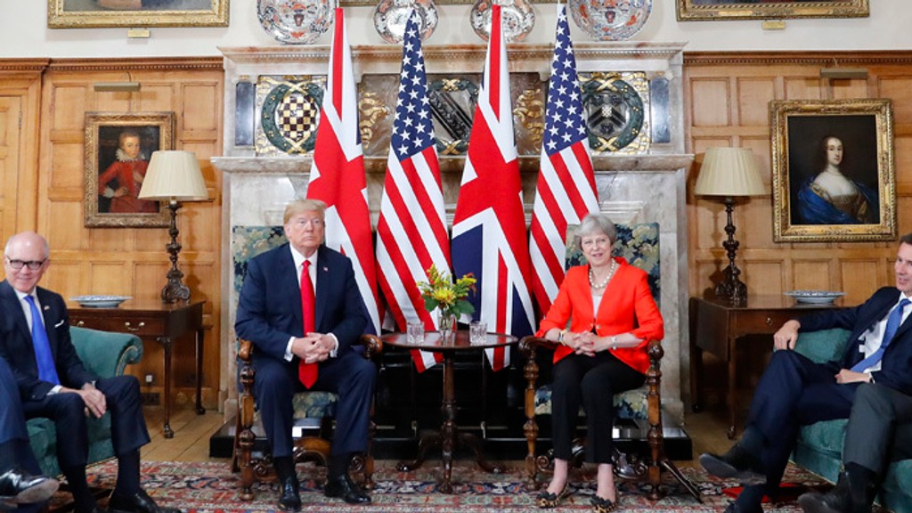 V spomínanom rozhovore pre The Sun pohrozil Trump hostiteľke stroskotaním myšlienky voľného obchodu medzi Spojenými štátmi a Britániou, pokiaľ by si Londýn po tzv. brexite ponechal príliš úzke väzby so zvyškom európskeho bloku. V piatok však pred novinármi poprel, že by Mayovú kritizoval, a dodal, že má pred ňou "veľký rešpekt".
