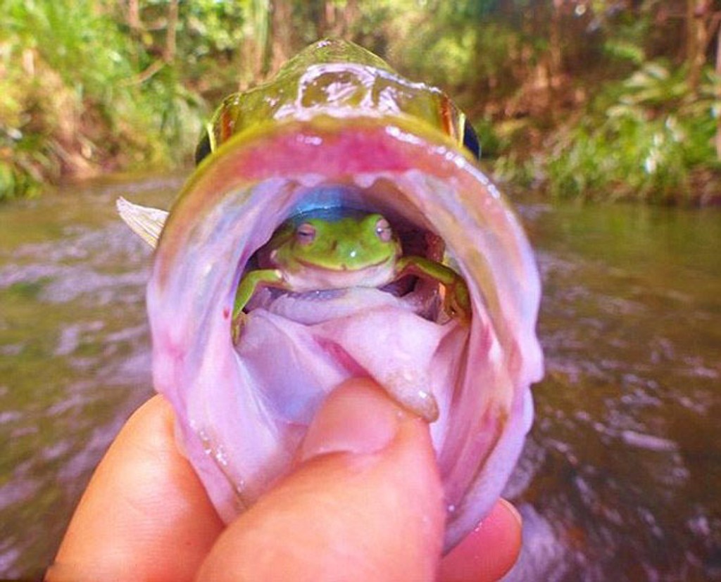 Žaba potom vyskočila z ostrieža, preskočila rybárovu hlavu a bola na slobode. Zrejme sa už bude mať pred rybami na pozore.