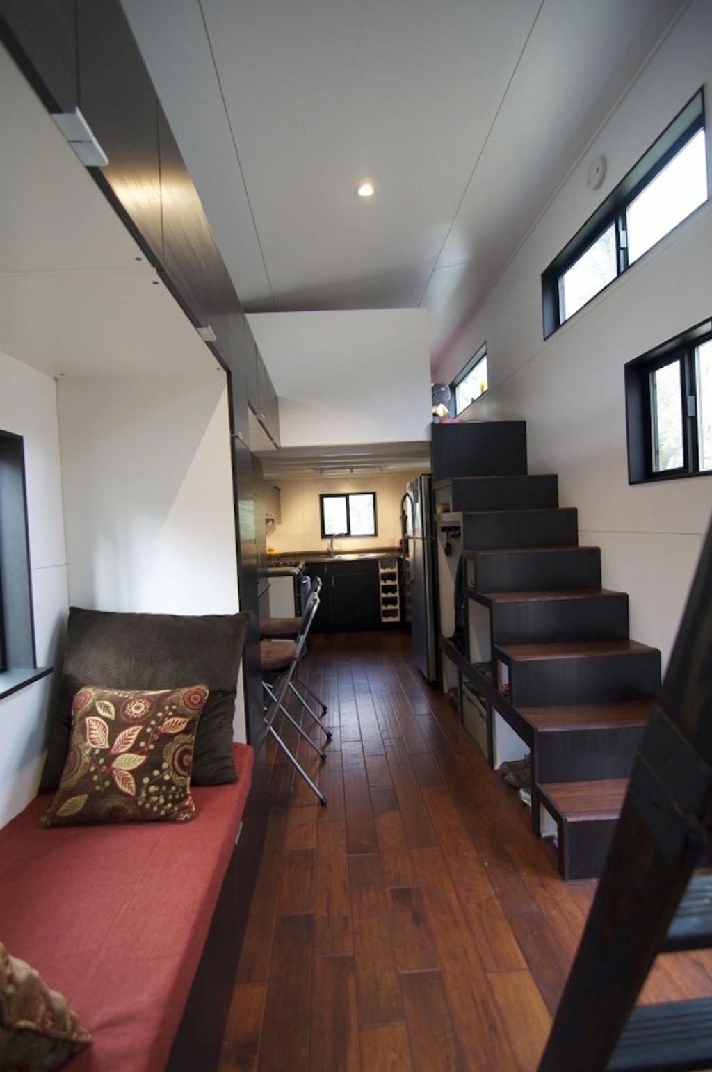 Všetko je v ňom funkčné a moderné. Má dokonca aj poschodie, schodisko, kuchyňu, kúpeľňu, spálňu s obývačkou a aj kanceláriu. Majú aj priestor na skladovanie. Všetko je úžasne vymyslené tak, aby bolo miesto na všetko a manželia si doslova nešliapali po krku.