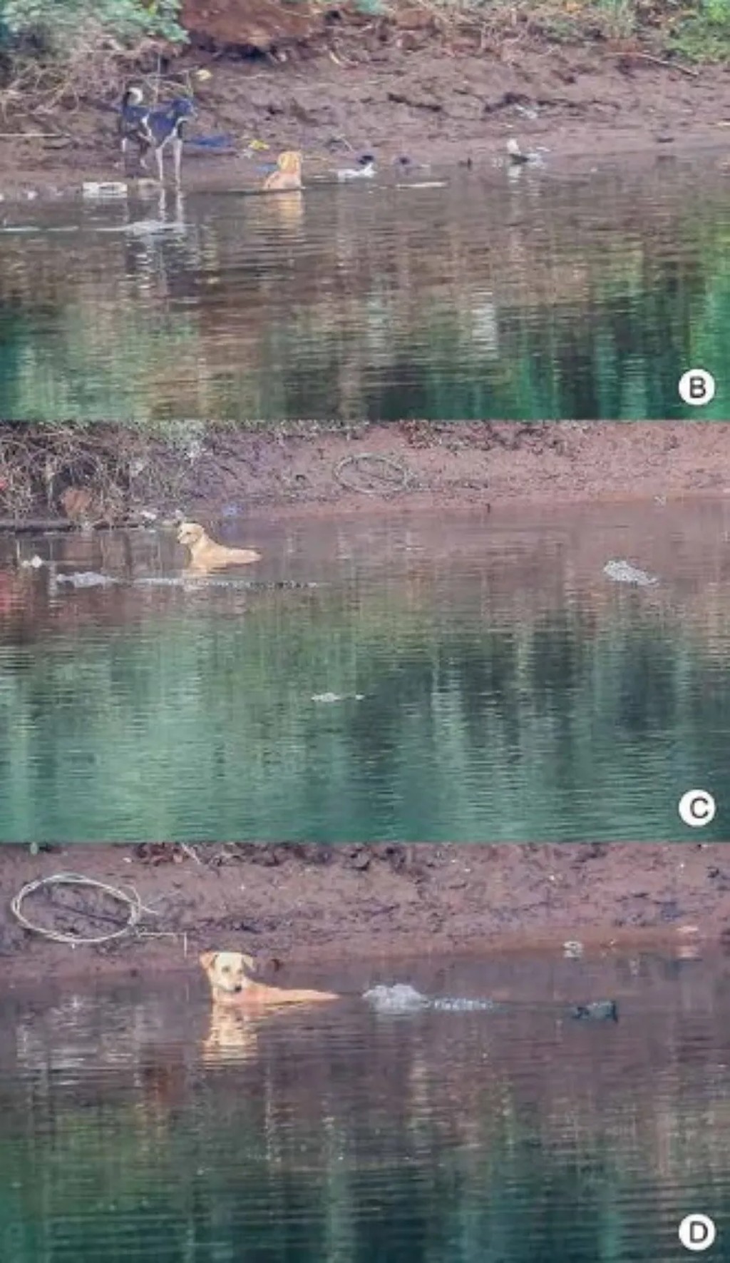 „Odviedli psa preč z miesta, kde mu hrozilo napadnutie svorkou divých psov čakajúcich na brehu rieky,“ napísali. „Tieto krokodíly psa svojimi ňufákmi postrkovali pred sebou, aby bezpečne vystúpil na breh a nakoniec unikol.“