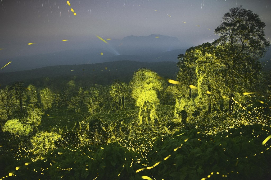 Tento pozoruhodný obrázok vznikol v lesoch indickej tigrej rezervácie Anamalai. Sriram Murali naskladal 50 19-sekundových expozícií, aby ukázal záblesky svetlušiek vytvorené počas 16 minút. Vyhrala kategóriu Správanie: Bezstavovce.