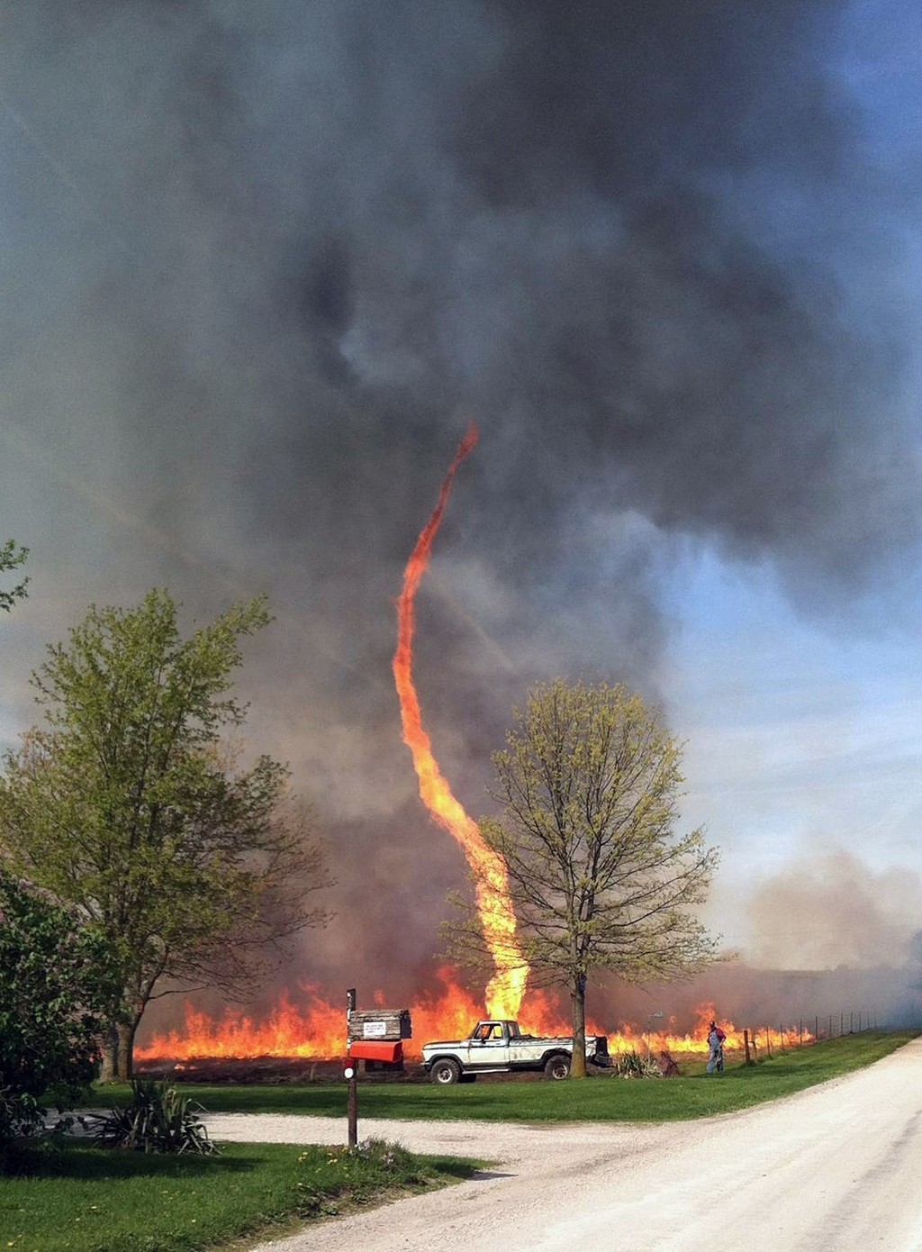 Tornádo vytvorilo hustý a sivý dym, plamene boli všade okolo. Mnohí fotografiu spochybňovali a mysleli si, že je to fotomontáž. Podobnú fotku však zaslal aj Shawn Reynolds z kanálu Weather Channel. Takéto ohnivé tornáda sú zvyčajne úzke a môžu byť vysoké až niekoľko sto metrov. Teplota tam môže dosiahnuť až 2000 stupňov Celzia.