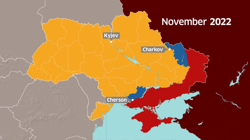 Pre rokom Ukrajinci vytlačili Rusov zo severu a severovýchodu. Veľkým úspechom bolo oslobodenie mesta Cherson a Charkov.