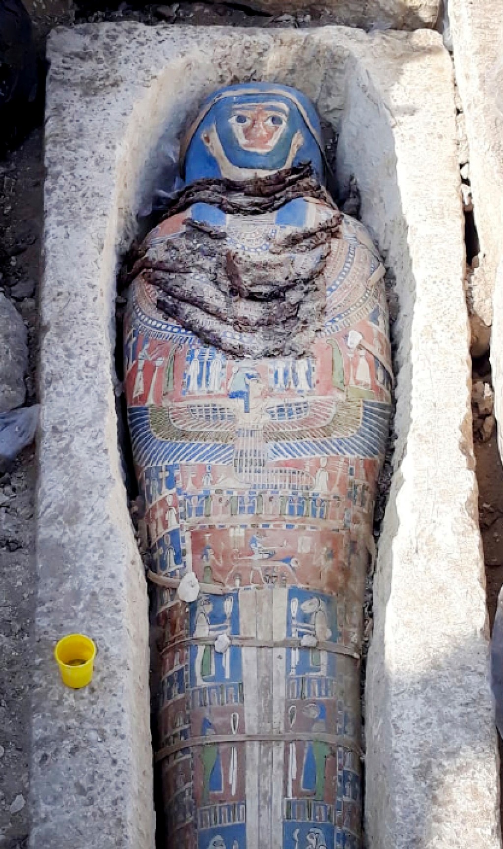 Egyptské ministerstvo pre pamiatky v utorok večer uviedlo, že múmie z Neskorého obdobia (664-332 pred n.l.) sú pokryté vrstvou maľovaného materiálu nazývaného kartonáž vo forme ľudského tela.
