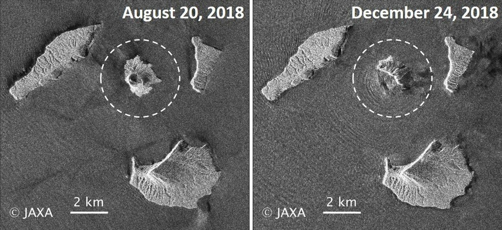 Indonézske vulkanologické observatórium (PVMBG) v sobotu na základe vizuálnych pozorovaní z predchádzajúceho dňa uviedlo, že nadmorská výška vulkánu dosahuje teraz 110 metrov, čo je zníženie o 228 metrov. Informovala o tom tlačová agentúra DPA.