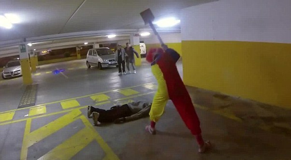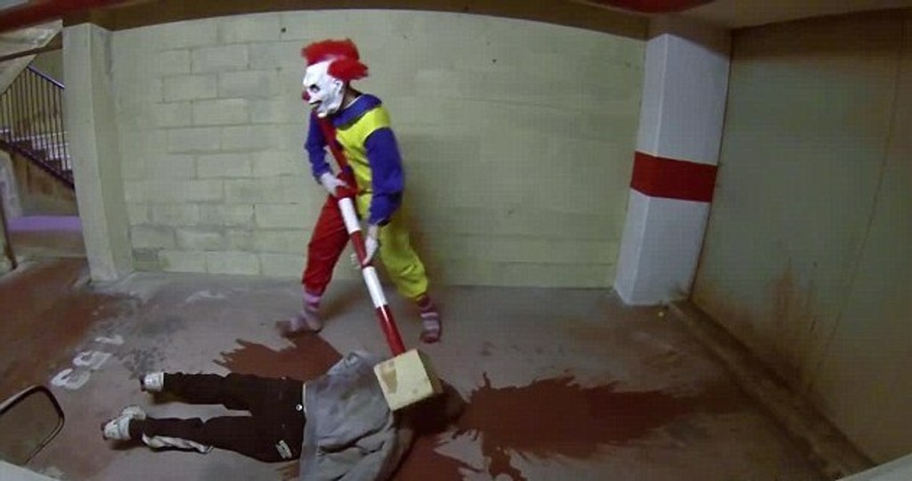 Hrozivý klaun - vrah zabíja svoje obete obrovským kladivom v podzemnom parkovisku, keď v tom ho vyrušia okoloidúci. Nič netušiaci ľudia sa vydesia a začnú utekať preč, klaun ich samozrejme naháňa.