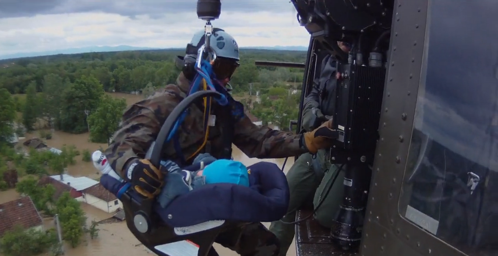 Slovinská armáda pridala na svoju facebookovú stránku video z jednej zo záchranných akcií. Vojaci v Bosne a Hercigovine zachraňovali pomocou vrtuľníka bábätko z domu, ktorý zaplavila voda. Aj keď akcia vyzerala nebezpečne, vojakom sa podarilo bábätko zachrániť.