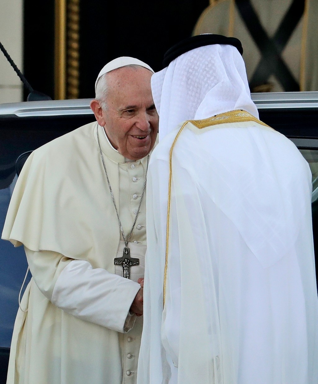 Na schôdzke v prezidentskom paláci v Abú Zabí, kde pápeža prijali s najvyššími vojenskými poctami, bol aj viceprezident SAE a dubajský emir Muhammad ibn Rášid Maktúm.