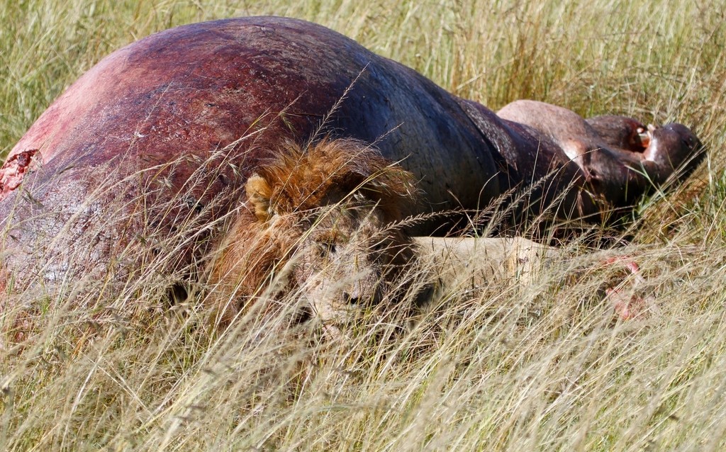 Takto to vyzerá, keď si lev chráni korisť.