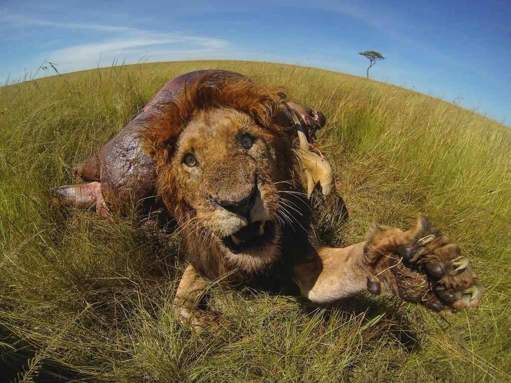 Robyn Preston z Nového Zélandu pri tom použila GoPro kameru, ktorú namontovala na predlžovaciu tyč. Zbytočne neriskovala a leva pozorovala z bezpečnej vzdialenosti.