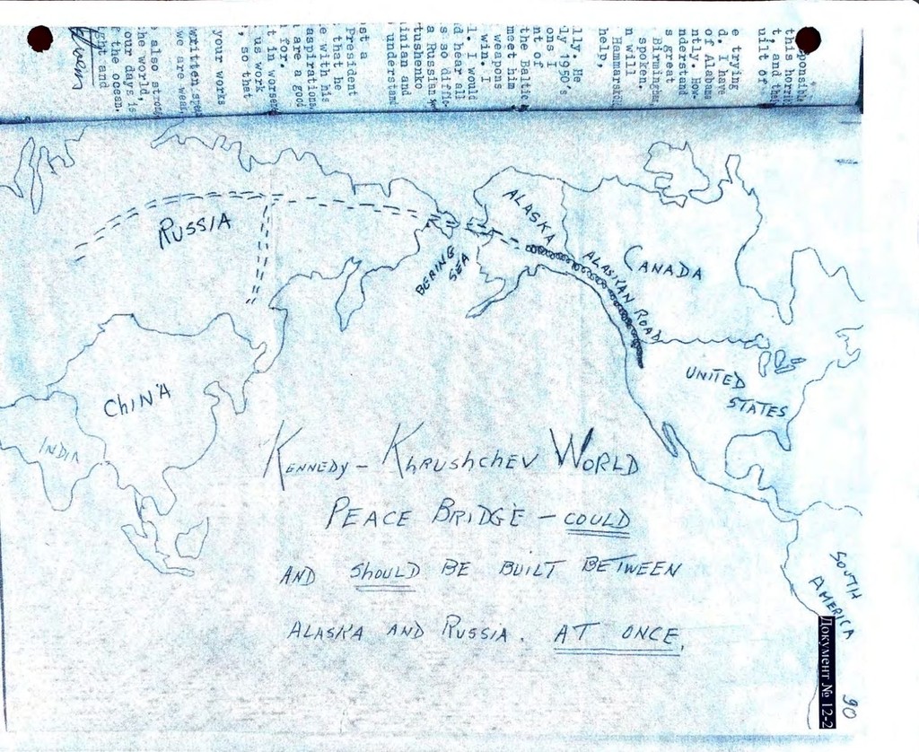Ruský vyjednávač uviedol, že takýto plán existoval v časoch studenej vojny, vtedy išlo o most Kennedy-Chruščov, ktorý je na starom nákrese, ktorý Dmitriev zdieľal v príspevku, označený ako „most svetového mieru“.