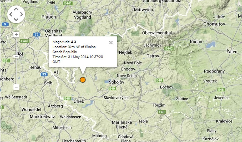 Podľa informácií USGS.gov malo zemetrasenie epicentrum necelé dva kilometre od Skalné u Chebz, neďaleko hraníc s Nemeckom. Epicentrum bolo v hĺbke desať kilometrov. Podľa portálu začalo zemetrasenie presne o 12.37 h..