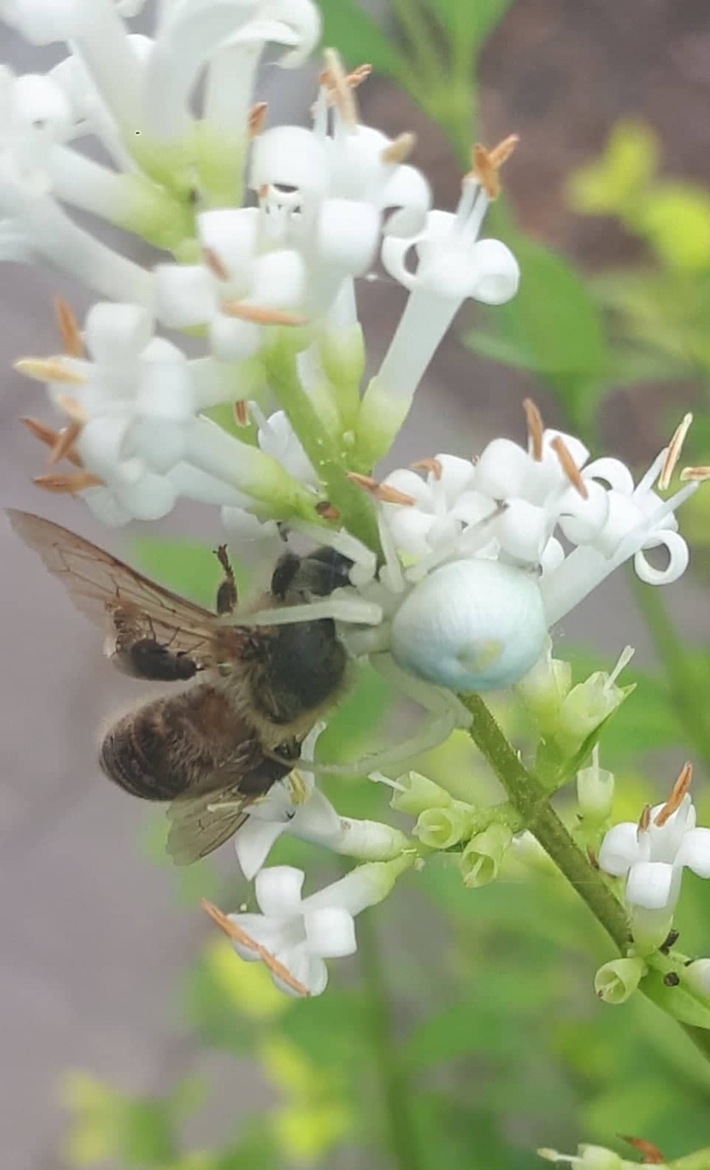 Farebná premena vyžaduje niekoľko dní a je riadená prostredníctvom zraku. Pavúk väčšinou striehne na kvetoch a listoch. Väčšinou sa živia muchami a malým hmyzom, no ako môžeme vidieť na fotografiách, trúfnu si aj na včely.