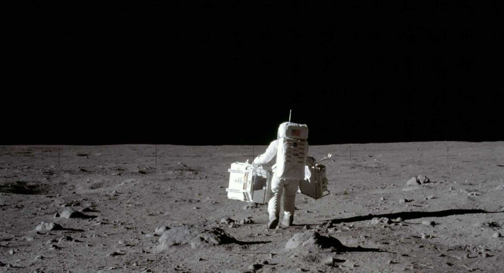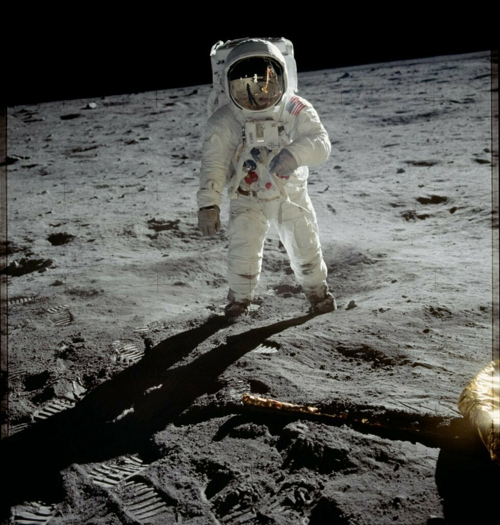 Skeptici tvrdili, že na fotografii Buzza Aldrina, ktorú urobil Neil Armstrong, niečo nie je v poriadku. Tam, kde by mal byť v odraze na helme vidno fotoaparát, nič nie je.