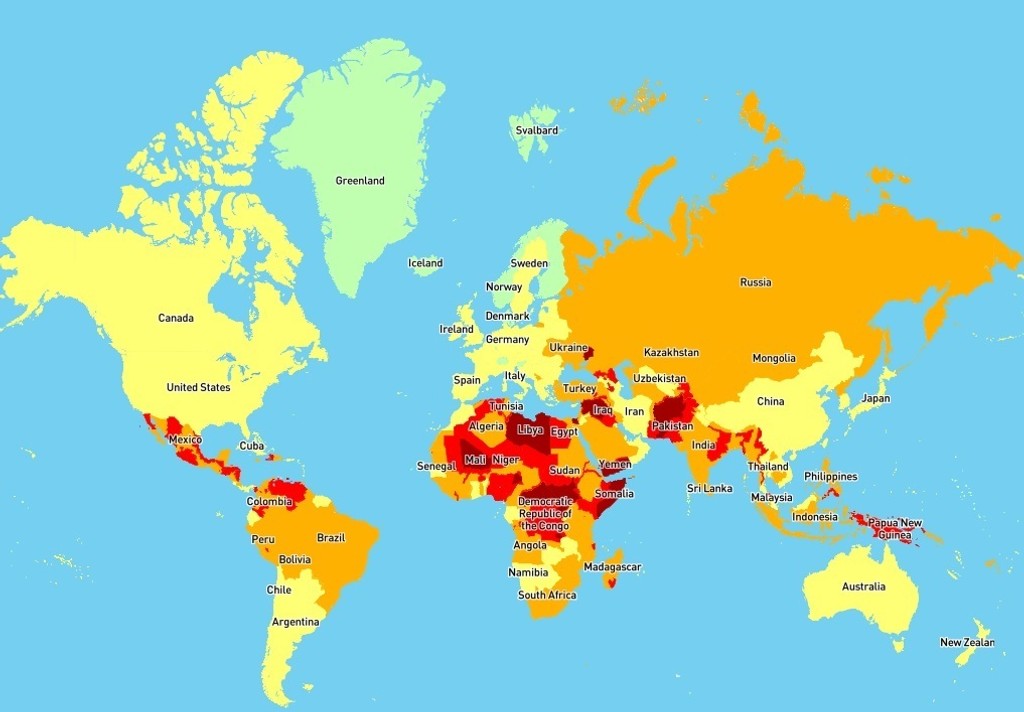 Na základe štúdie vznikla aj interaktívna mapa ktorá farebne rozlišuje posudzuje krajiny na základe bezpečnostnej situácie, hroziacich zdravotných rizík a nehodovosti na cestách.