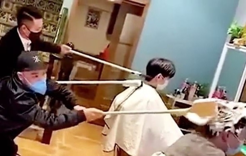 Čínski barberi našli kreatívny spôsob, ako upraviť vlasy svojich klientov a zároveň udržovať bezpečnú vzdialenosť.
