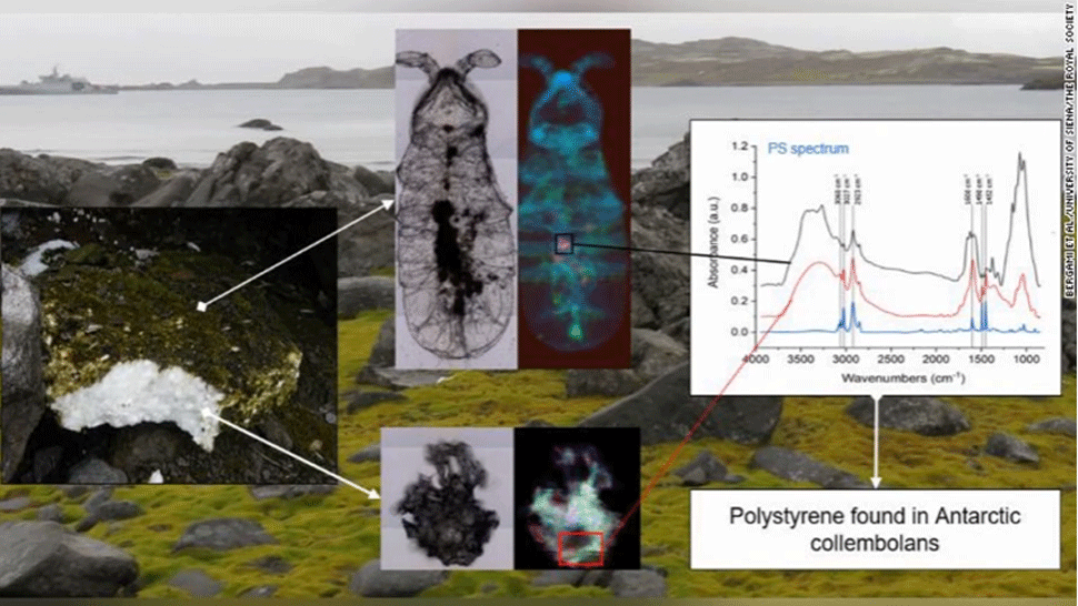 Výskumný tím preto odobral vzorky, pri skúmaní ktorých použil infračervenú spektroskopiu na detekciu prítomnosti mikroplastov v telách zvierat. Bergamiová uviedla, že zvieratám sa mikroplasty dostali do tela, keď požierali riasy, machy a lišajníky.