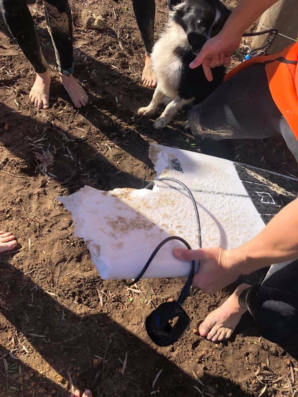 Traja surfisti (úplne vľavo), ktorí Philovi pomohli z vody, Phil a jeho priateľka Misha