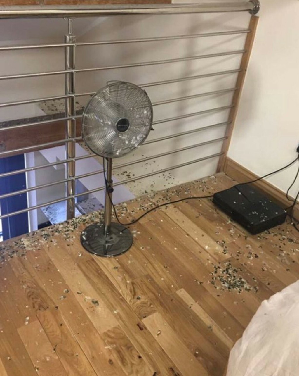 Pred týždňom dostal mladík email, že v jeho izbe našli obrovskú spúšť po holuboch. Ich trus bol doslova všade: na kuchynskej linke, na stolíku, po dlážke, na posteli, v skrini na oblečení a pod. V izbe našli aj holubie vajcia a dokonca aj jedno mláďa.