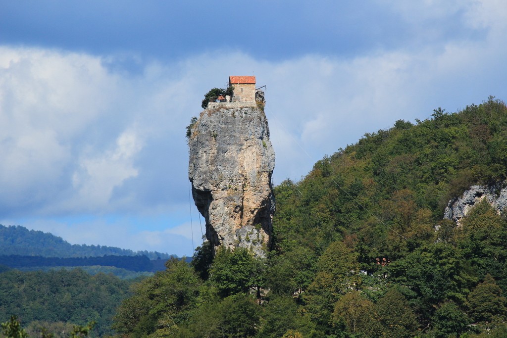 Malý kostolík postavili na 40-metrov vysokom skalnom stĺpe už v 7. storočí. Počas Uplynulých 20 rokov v ňom žije iba jeden mních, ktorý schádza dole iba dvakrát za týždeň. Jeden zostup po tenkom kovovom rebríku trvá 20 minút.