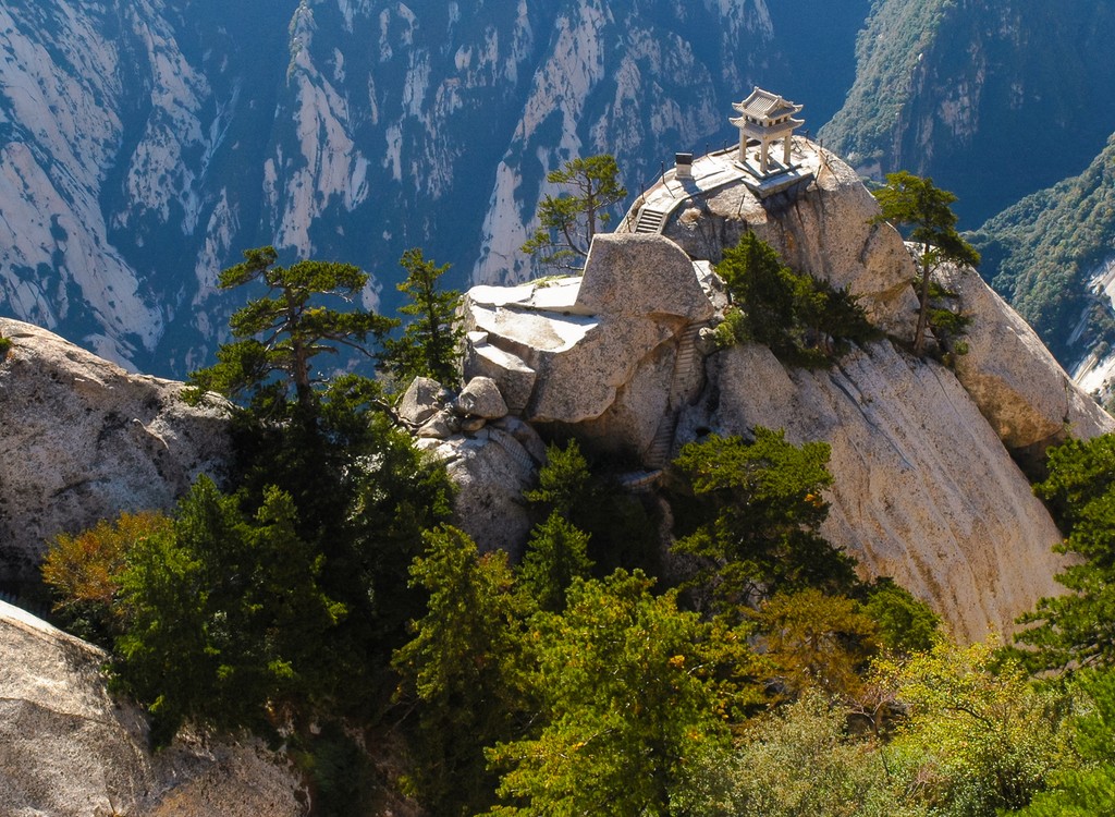Pavilón sa nachádza na vrchole posvätnej hory Huašan. Vedie k nemu 12 kilometrov dlhá cestička vytesaná do skál. Pohyb po nej je mimoriadne nebezpečný, ani to však neodrádza turistov, ktorí si chcú vychutnať nádherný výhľad.
