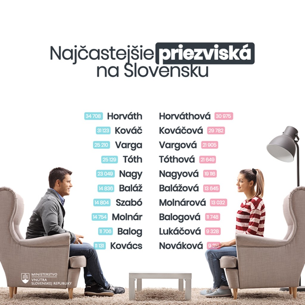 Ministerstvo vnútra pred pár dňami zverejnilo na sociálnej sieti najčastejšie krstné mená, ktoré tento rok dostávali pri narodení dievčatá a chapci, teraz k tohtoročným štatistikým pridali priezviská.