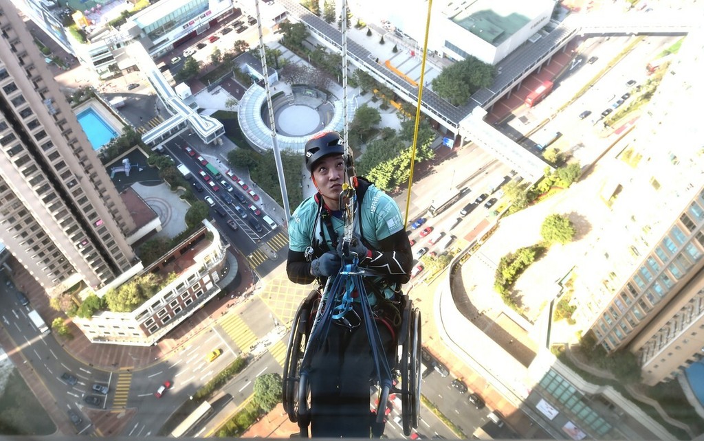 Obyvateľom Hongkongu sa uplynulý víkend naskytol neuveriteľný pohľad. Ochrnutý športovec Lai Chi-wai pripútaný k invalidnému vozíku vyliezol na mrakodrap do výšky viac ako 250 metrov. Pre neuveriteľný čin sa odhodlal, aby vyzbieral peniaze pre pacientov s poškodenou miechou, informuje CNN.