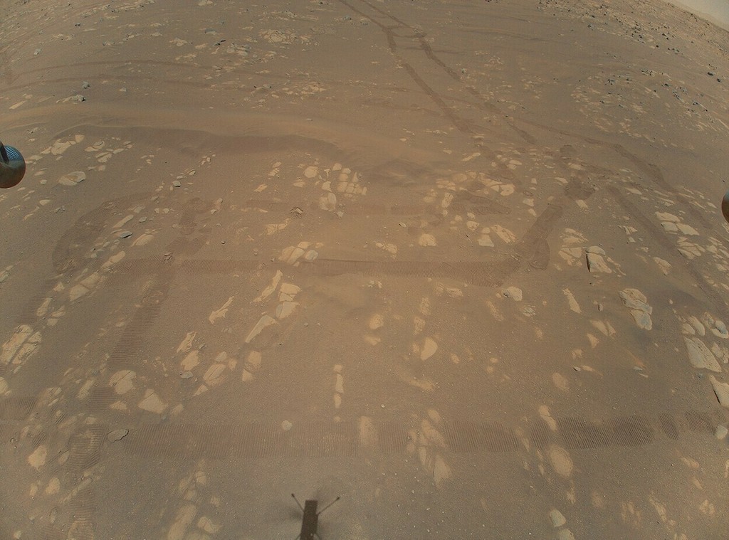 Malý stroj vážiaci 1,8 kilogramu tento raz zotrval vo vzduchu takmer 52 sekúnd a dosiahol výšku 4,9 metra. Po vzlietnutí sa vrtuľník naklonil v päťstupňovom uhle a prekonal vzdialenosť 2,1 metra. NASA teraz zverejnila fotografiu, ktorú stihol Ingenuity urobiť počas krátkeho letu.