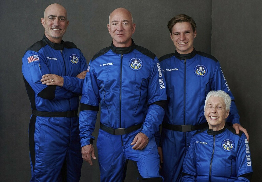 Do vesmíru s Daemenom a bratmi Bezosovcami letela aj 82-ročná americká letkyňa Wally Funková, ktorá sa stala najstarším človekom vo vesmíre. Rekord držal astronaut John Glenn, ktorý v roku 1962 ako prvý Američan obletel zemeguľu a do vesmíru sa opäť pozrel v roku 1998 ako 77-ročný.