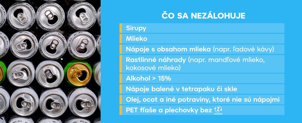 Zálohovať budete môcť plastové fľaše a plechovky od nápojov s objemom 0,1 až 3 L vrátane. Konkrétne plechovky z limonád, piva, radlera a energetických nápojov a fľaše z minerálnych vôd, ľadových čajov, ovocných štiav a vína.