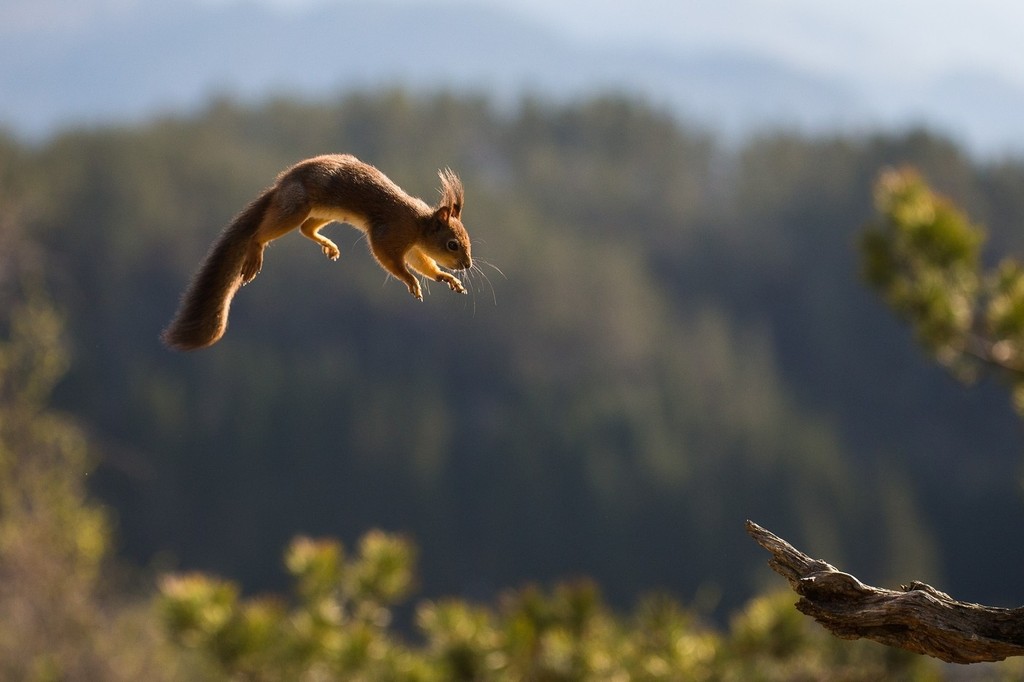 Veverička obecná je totiž skvelým skokanom. Dokazujú to aj nasledujúce snímky. Fotograf zachytil veveričku pri honbe sa orieškom. Nič ju nezastavilo.