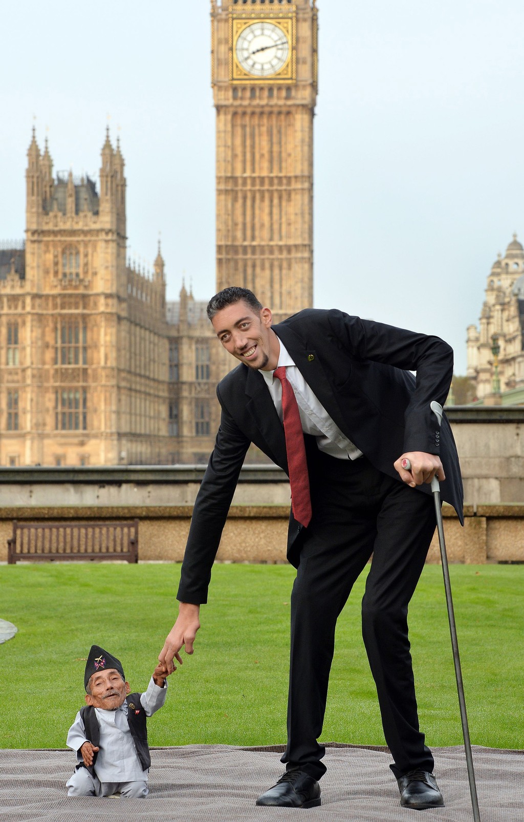 Najvyšší a najnižší muži sveta si v Londýne pri príležitosti Svetového dňa Guinnessových rekordov podali ruky. Išlo vôbec o prvé podujatie na svete, keď sa stretli dvaapolmetrový Turek s 55 centimetrov vysokým Nepálčanom. Informovala o tom agentúra DPA.