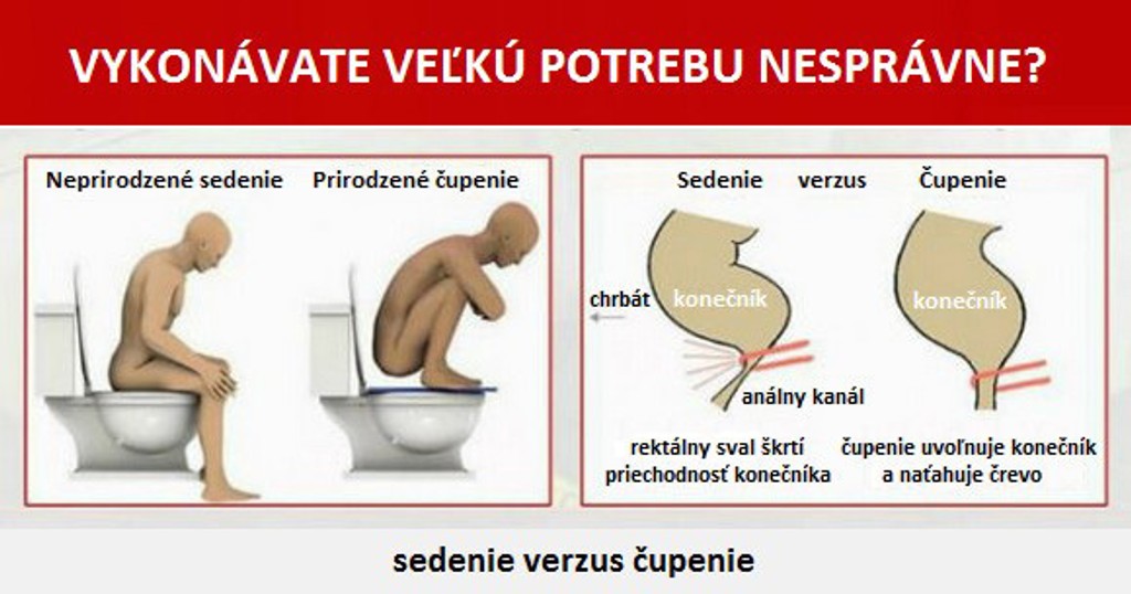 Odborníci sa zhodujú v tom, že nesprávny spôsob vyprázdňovania má vážny vplyv na naše zdravie a môže spôsobiť hemeroidy, herniu, zápal slepého čreva či syndróm zapáleného čreva.