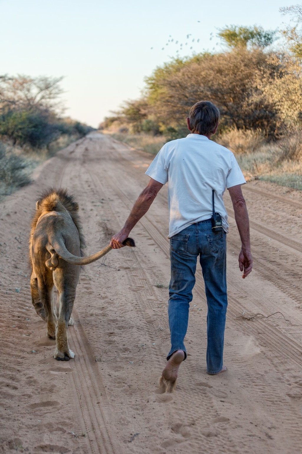 Lev je jedným z najobávanejších predátorov na svete. Strach z tohto zvieraťa však nič nehovorí Frikkiemu Von Solmsovi. Ten s levom vyrastal v tak tesnej blízkosti, že sa nebojí si s ním ľahnúť do jednej postele. Je to vlastne jeho veľký psík.
