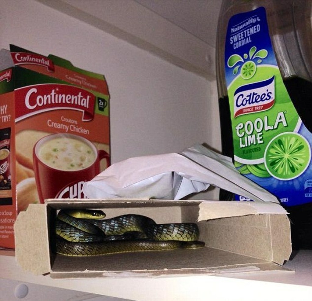 Medzi zemiakmi ležal schúlený had. Aj keď ho mala doma celý týždeň, neželanú návštevu si nevšimla. Hadovi sa nič nestalo, len Austrálčanka upozornila obchod, aby si dávali väčší pozor na to, čo predávajú.