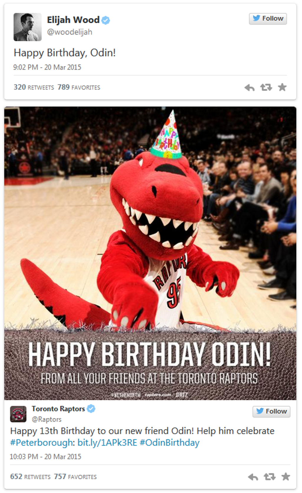 Správa sa rozšírila ako lavína! Týmto však jeho príbeh ale ani zďaleka neskončil. Na Twiteri sa objavilo asi 11-tisíc postov s hashtagom "OdinBirthday", v preklade "Odinove narodeniny" a priali mu všetko najlepšie. Prispeli taktiež celebrity ako Elihaj Wood, basketbalový tím Toronto Raptors či manželka predsedu vlády v Kanade. Desiatky ľudí sa spojili, aby Odinovi vynahradili večer, ktorý bol pôvodne veľký prepadák.
