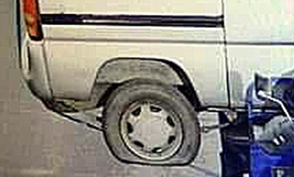 Na snímke je jasne vidieť, že dodávka mala defekt. Preto ju zrejme „niesol" do garáže. Policajti motoristu nevedeli identifikovať.
